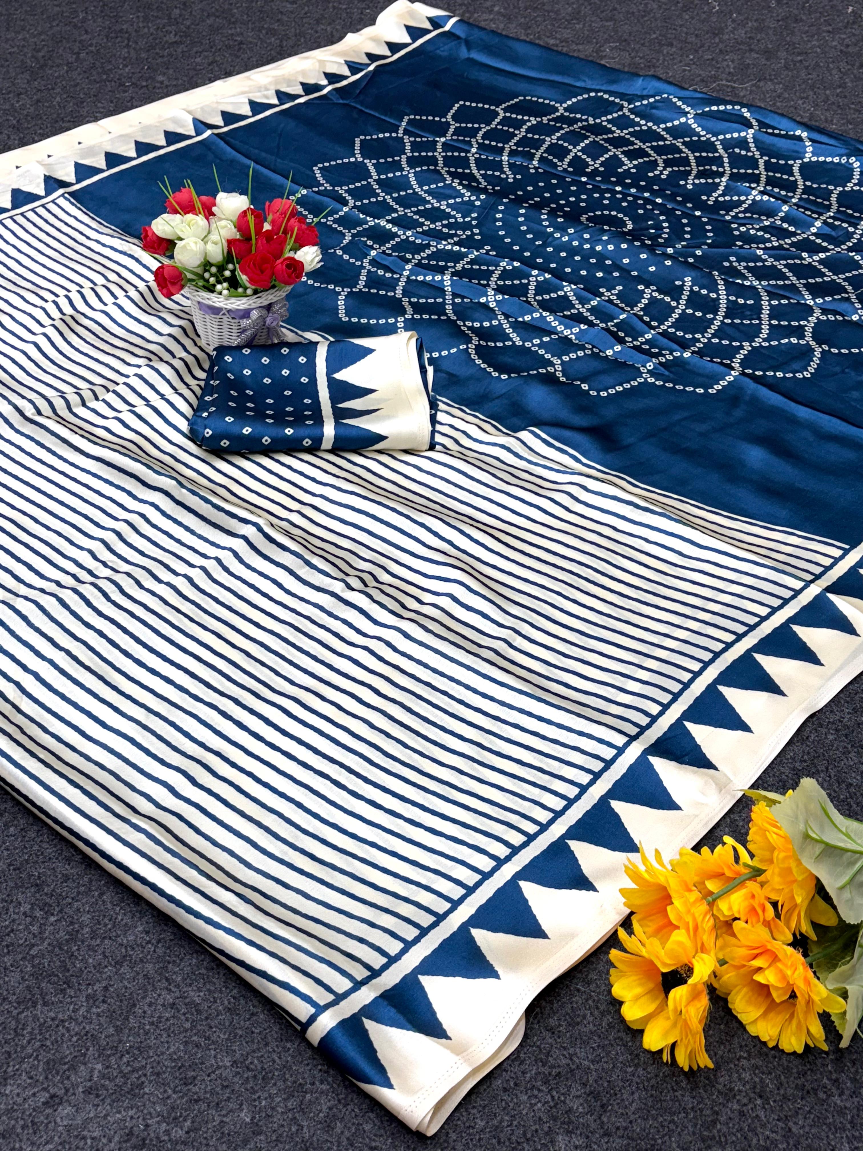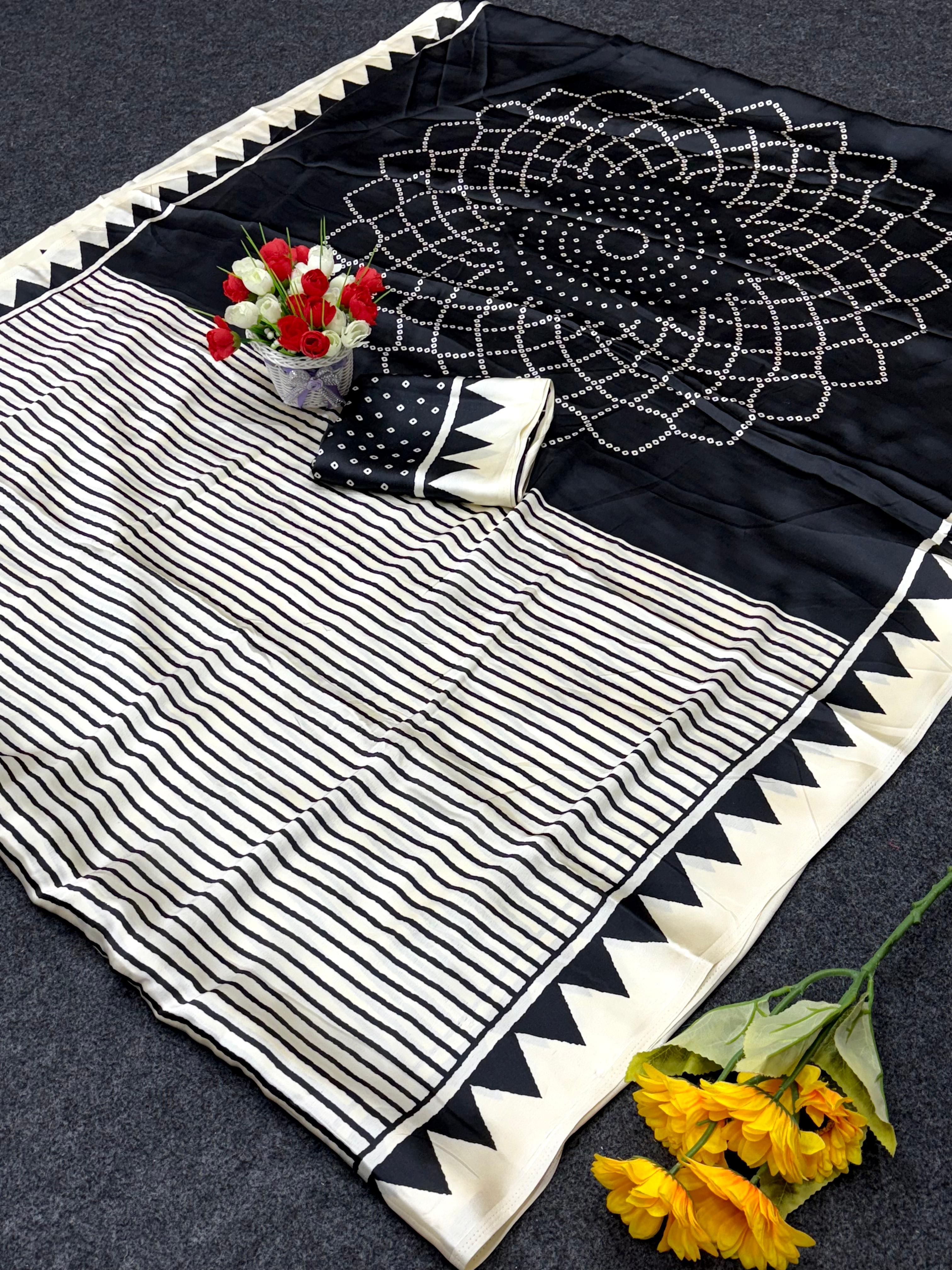Bollywood Crape Print Saree with Gajji Digital Printed beautiful Blouse for daily and wedding Saree Crape Silk Colour Border with printed beautiful Blouse