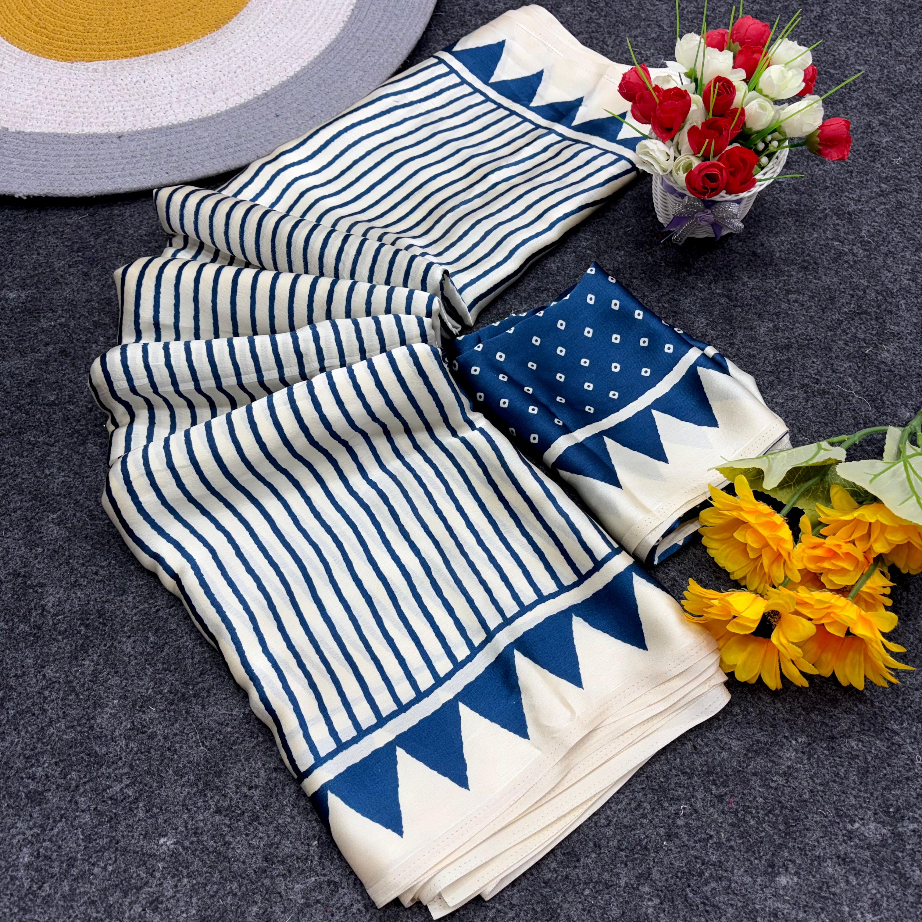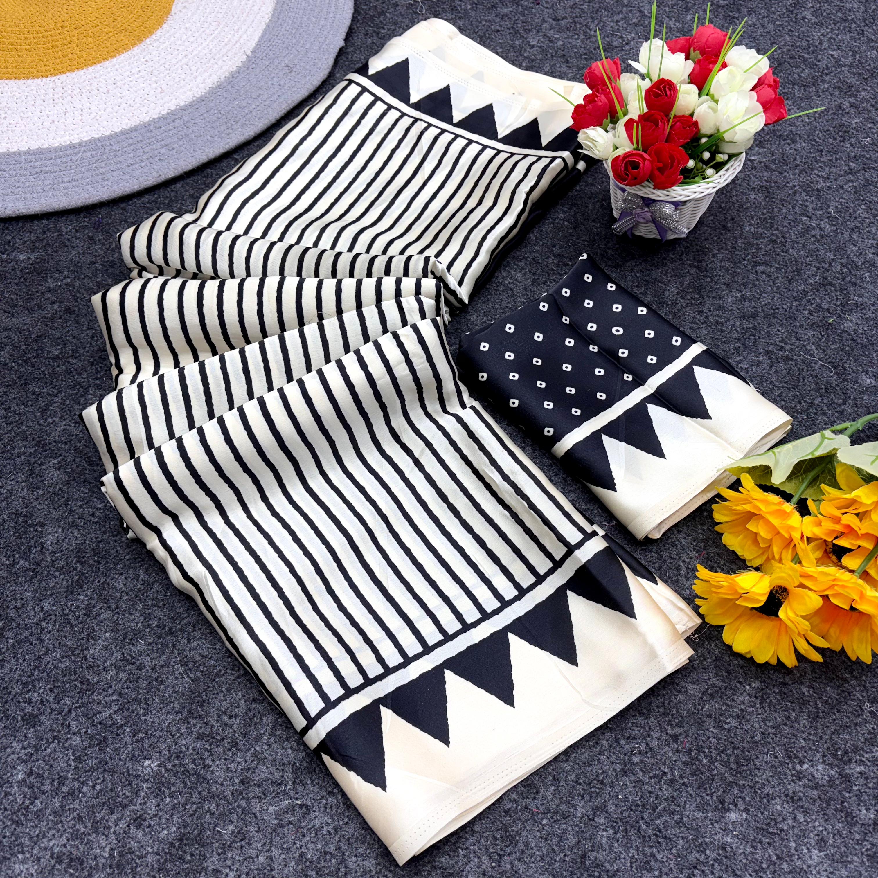 Bollywood Crape Print Saree with Gajji Digital Printed beautiful Blouse for daily and wedding Saree Crape Silk Colour Border with printed beautiful Blouse
