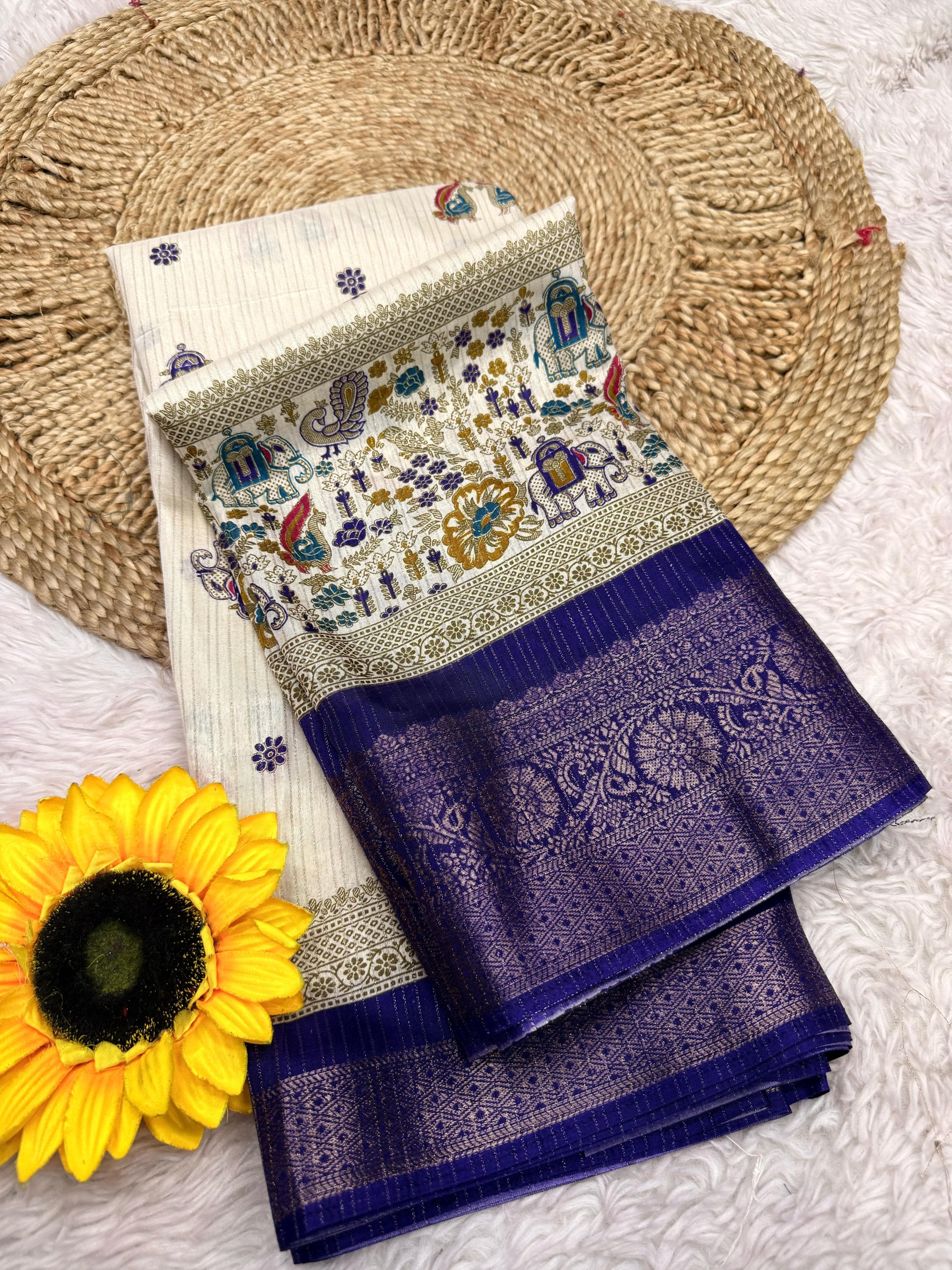 Saree Fabric : Chanderi Silk || Blouse Fabric : Chanderi Silk || Saree Work : Warli Print|| Blouse Work : Flower Print