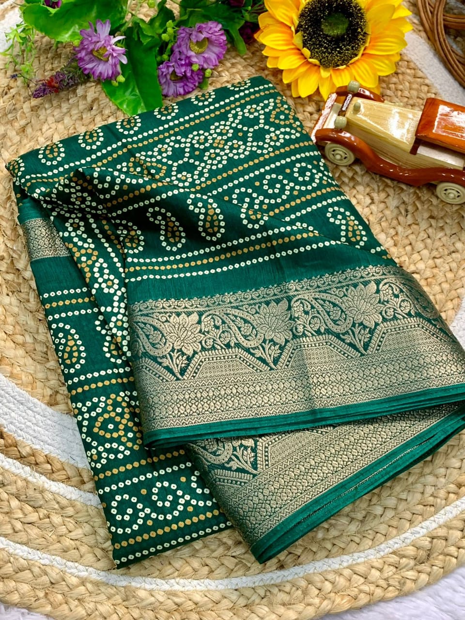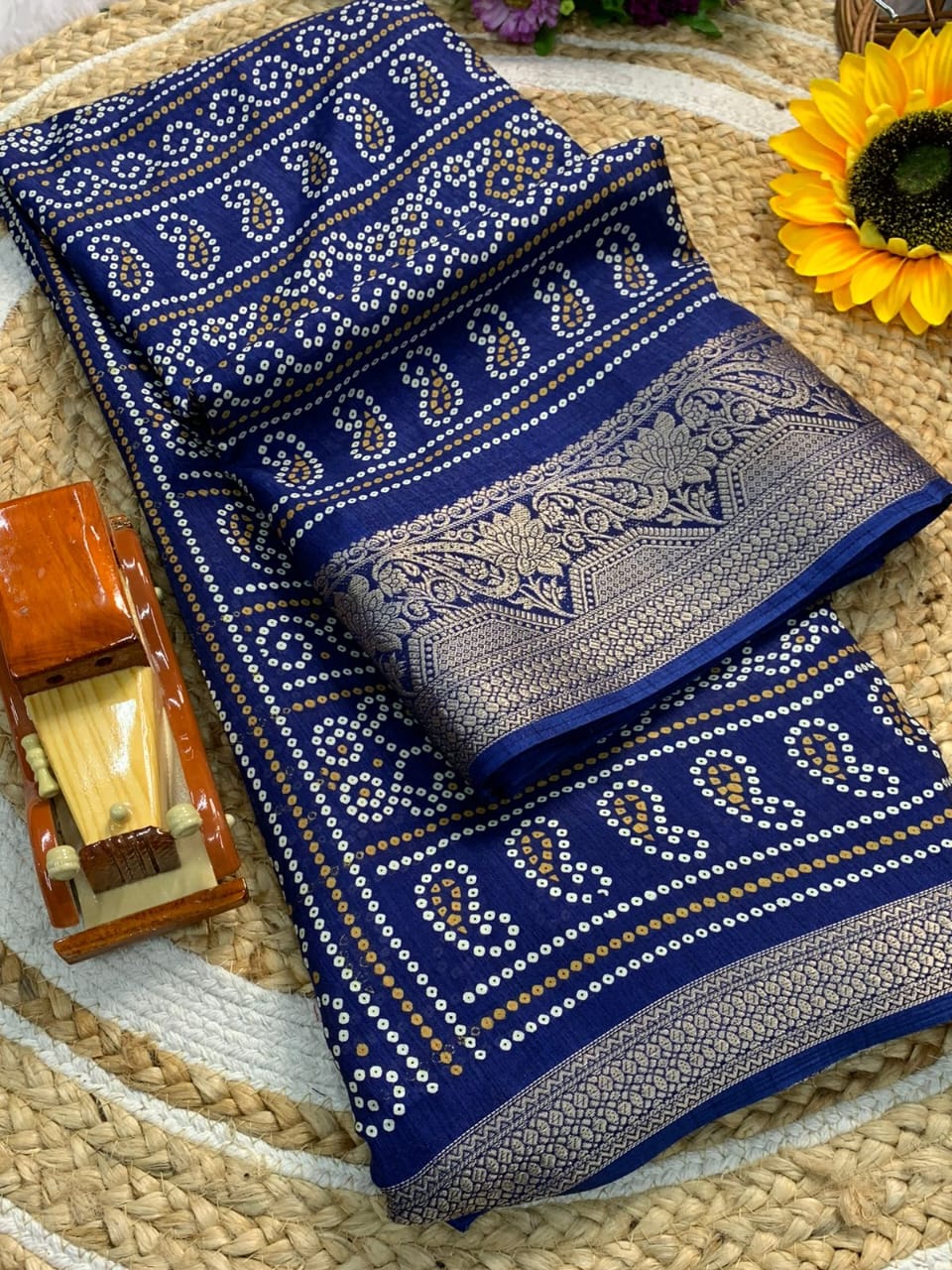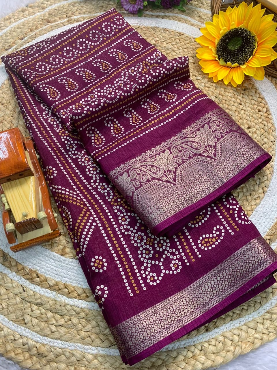 Saree Fabric : Dola Silk || Blouse Fabric : Dola Silk || Saree Work : Bandhani Print|| Blouse Work : Bandhani Print