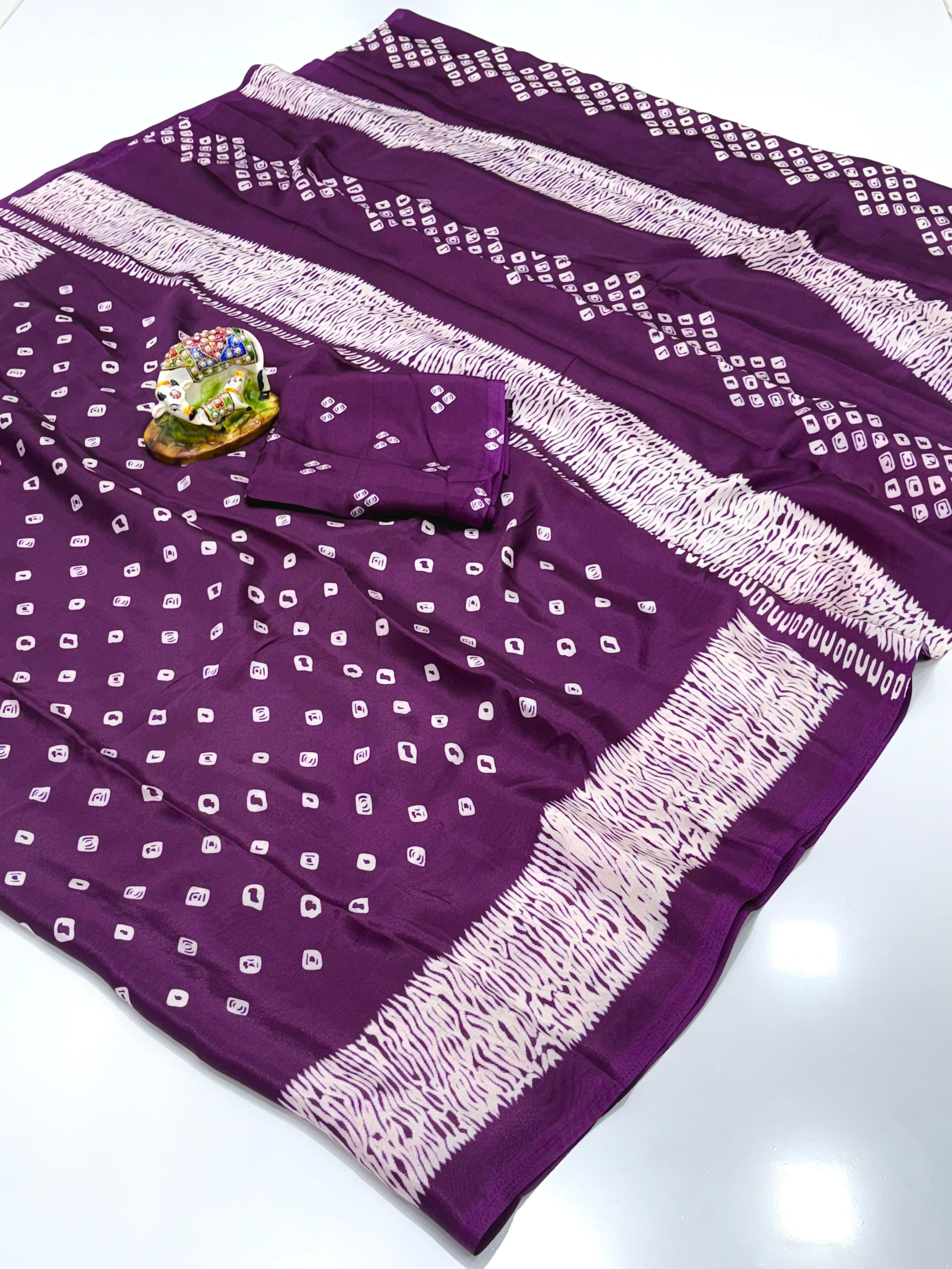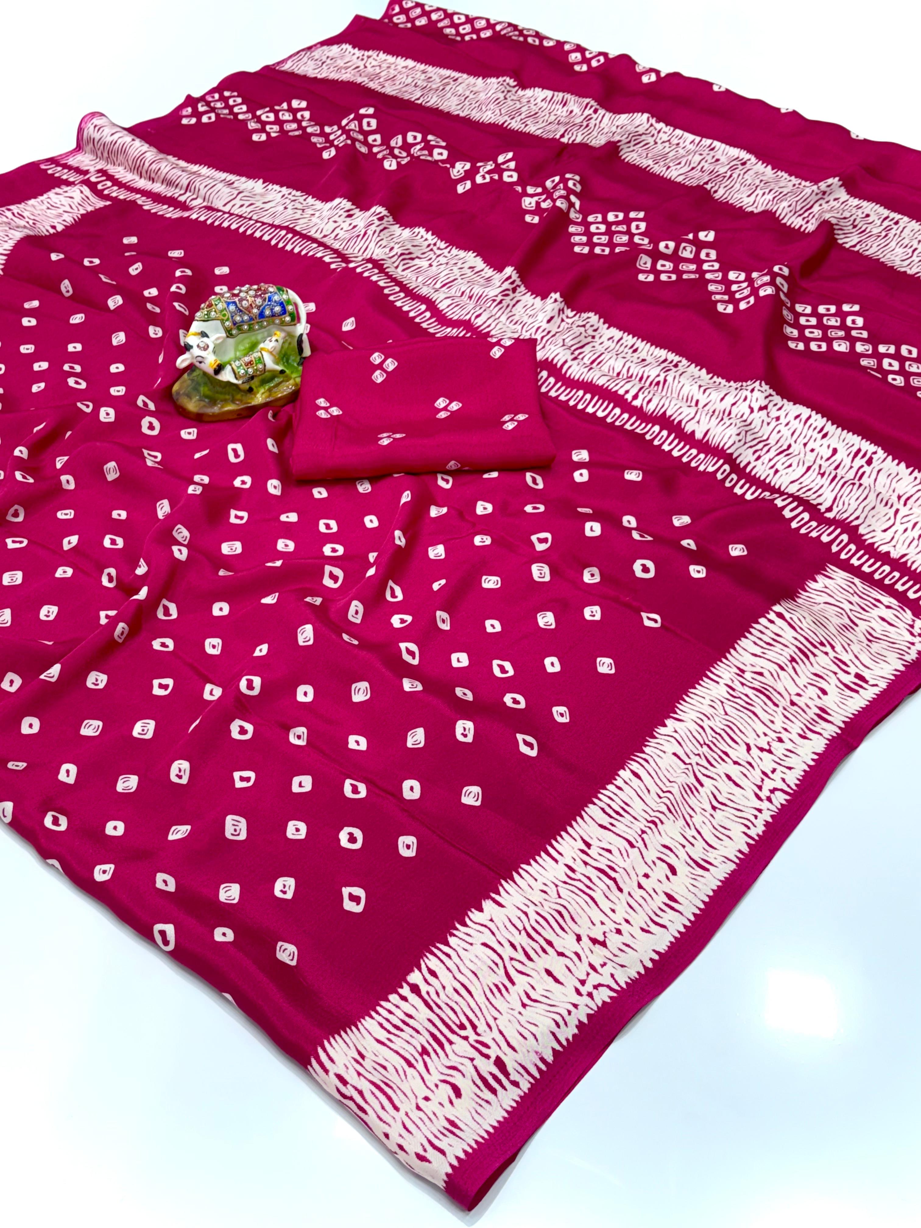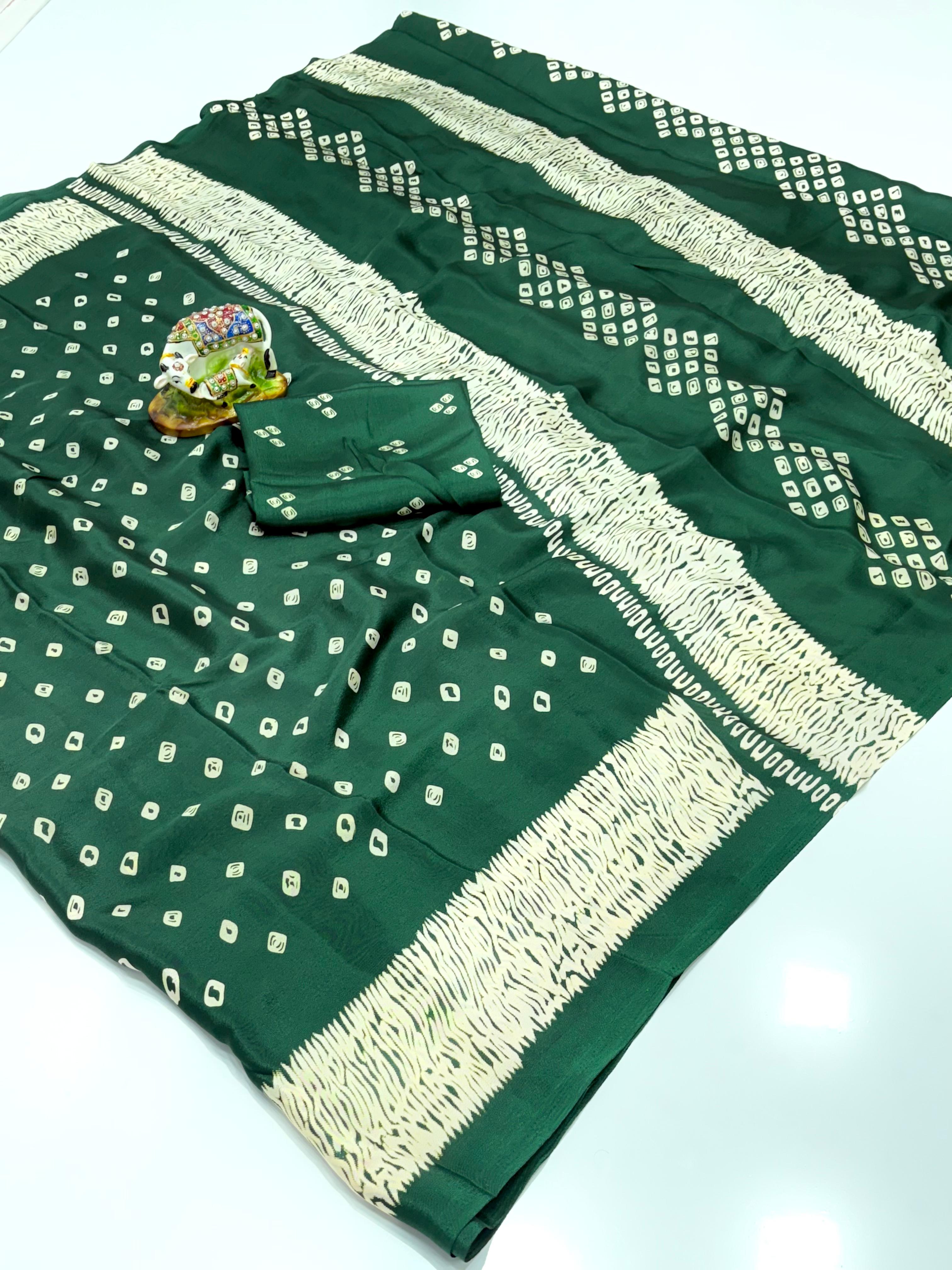 Crape Bandhani Print Saree with Gajji Digital Printed beautiful Blouse for daily and wedding Saree Crape Silk Colour Border with printed beautiful Blouse