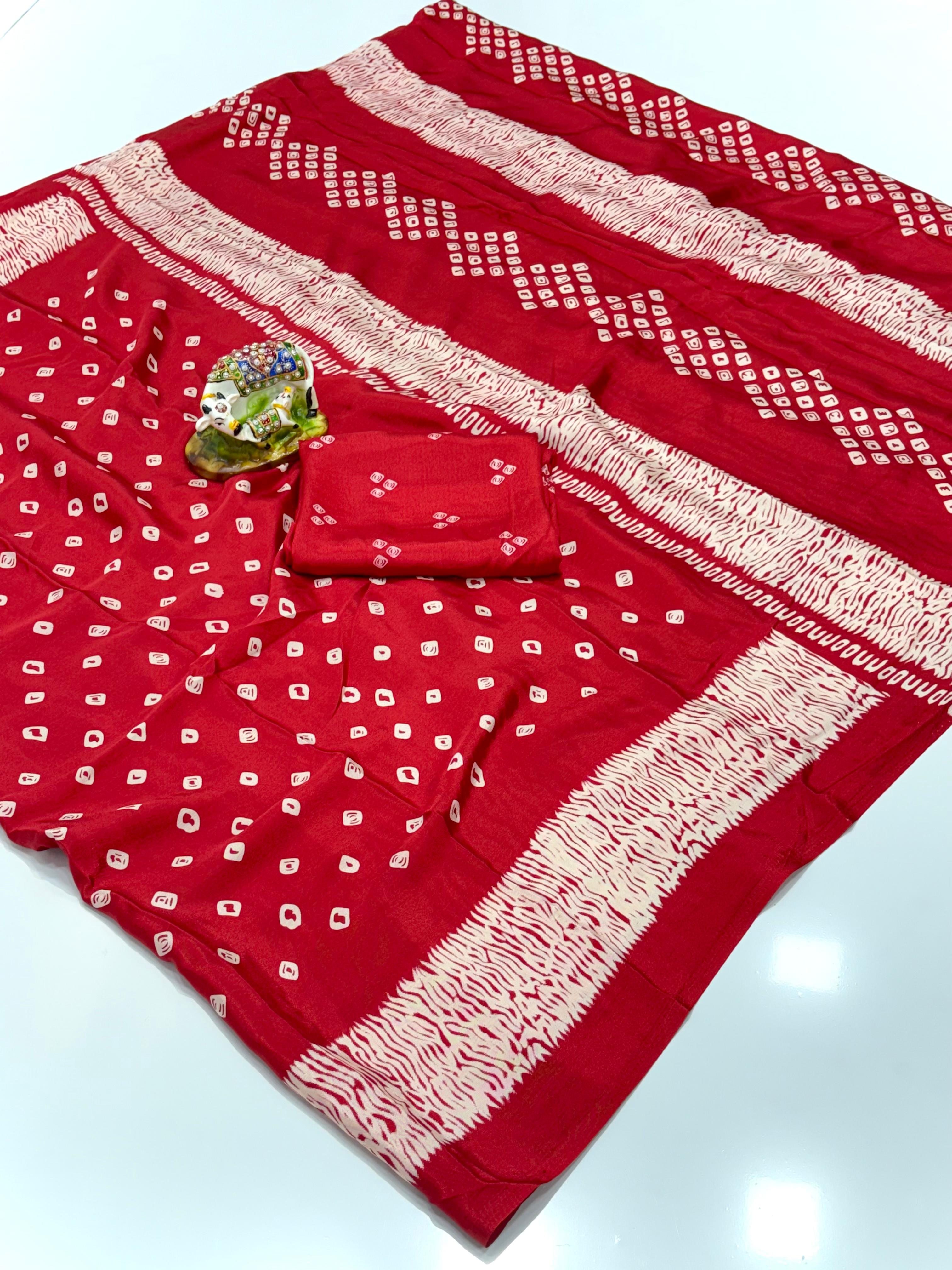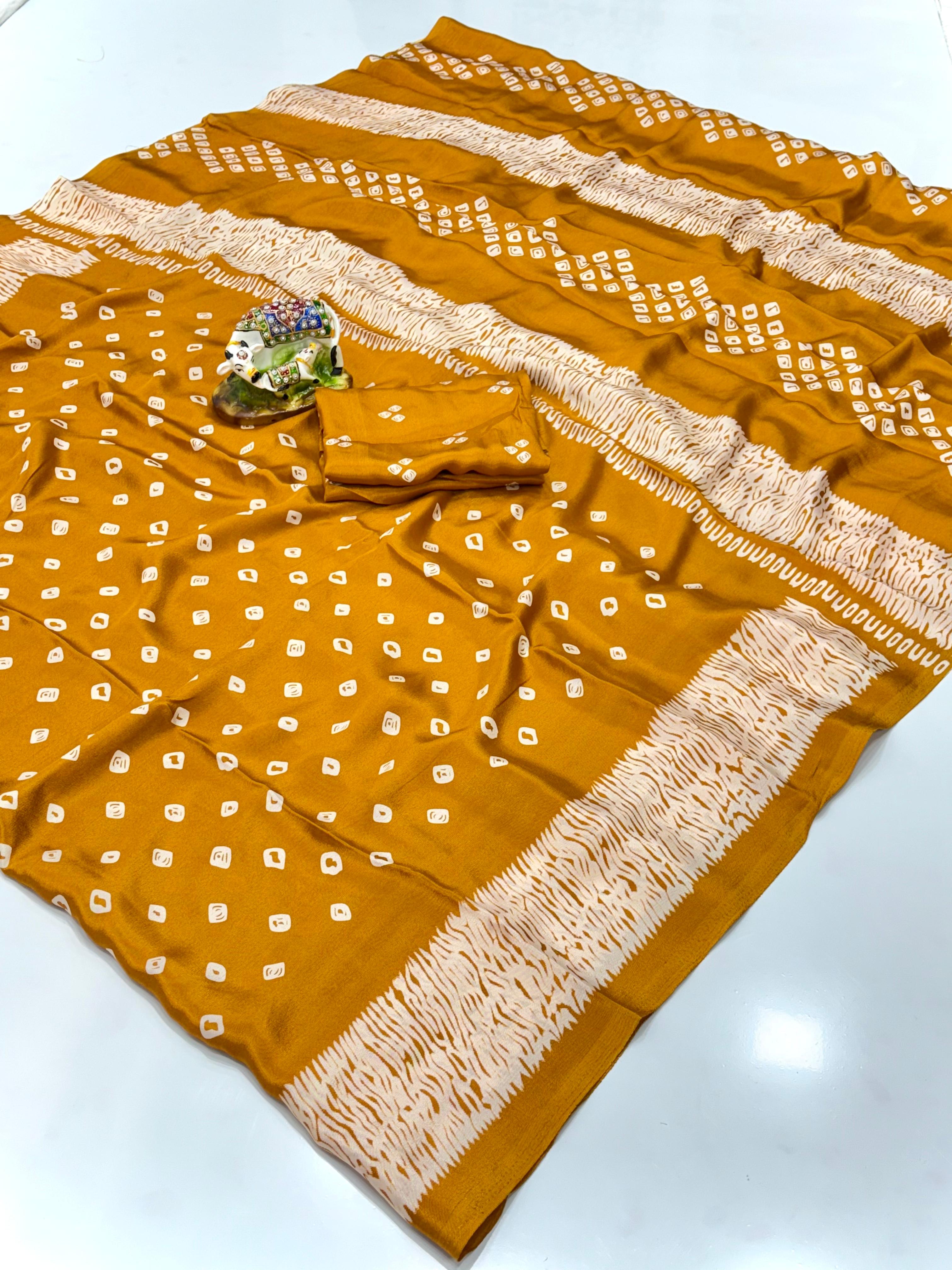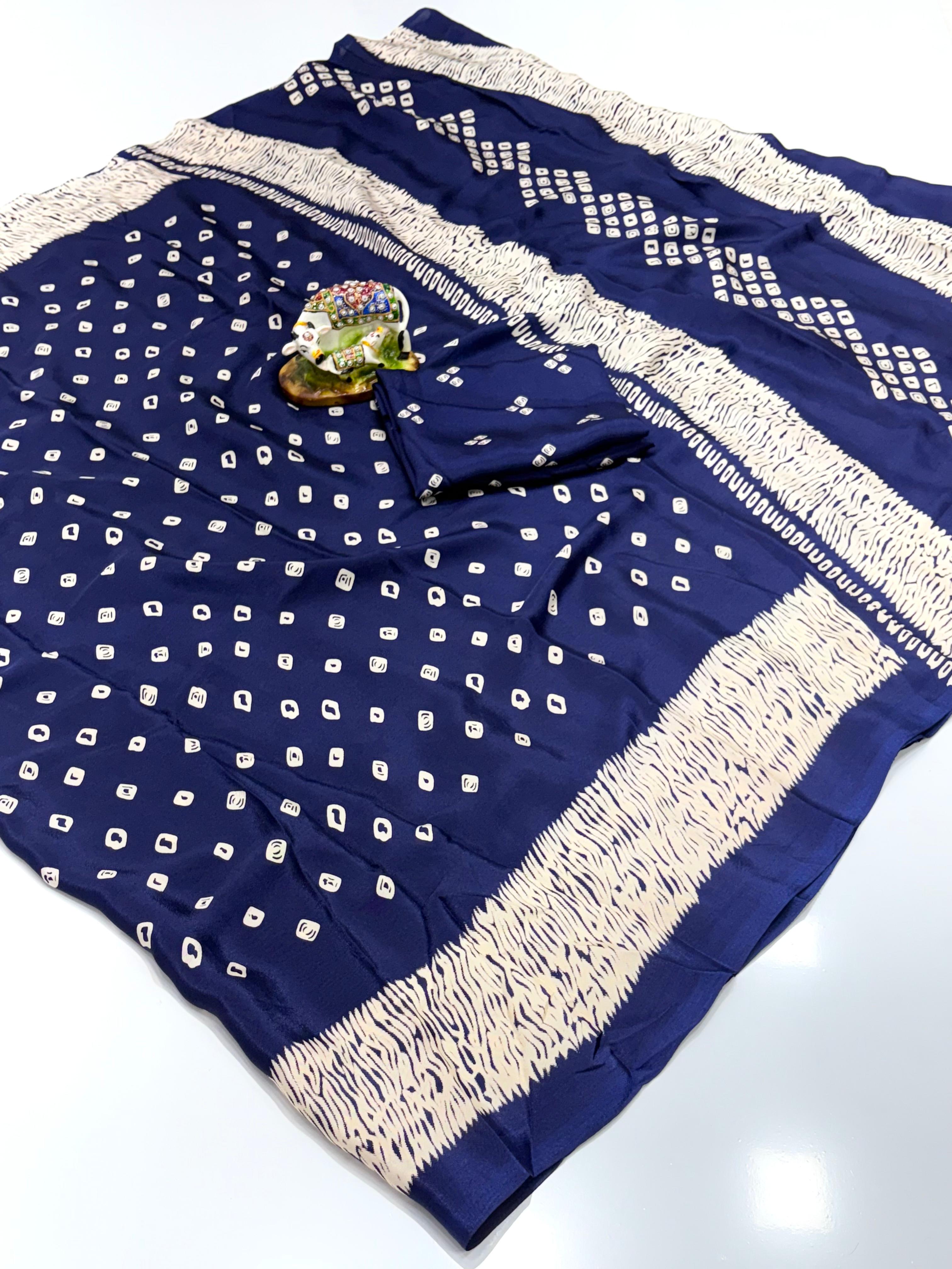 Crape Bandhani Print Saree with Gajji Digital Printed beautiful Blouse for daily and wedding Saree Crape Silk Colour Border with printed beautiful Blouse