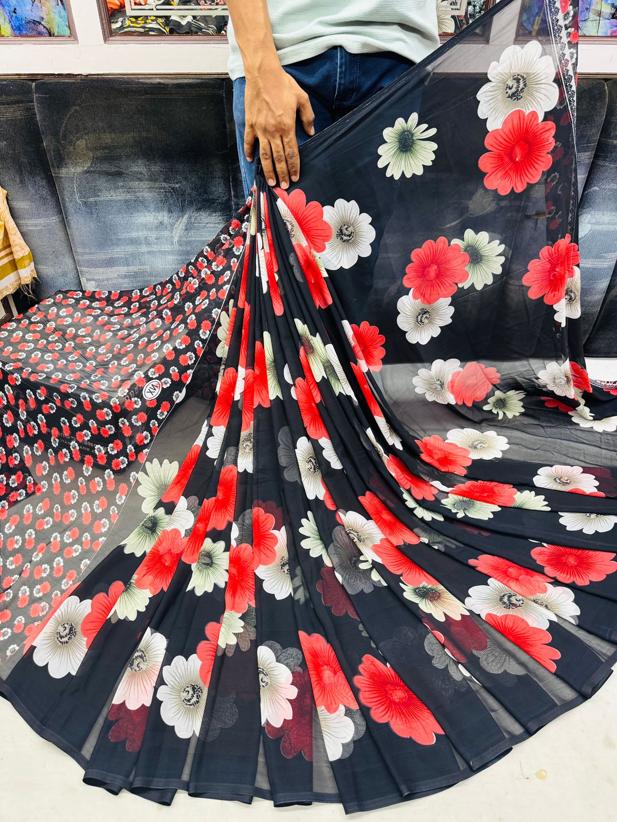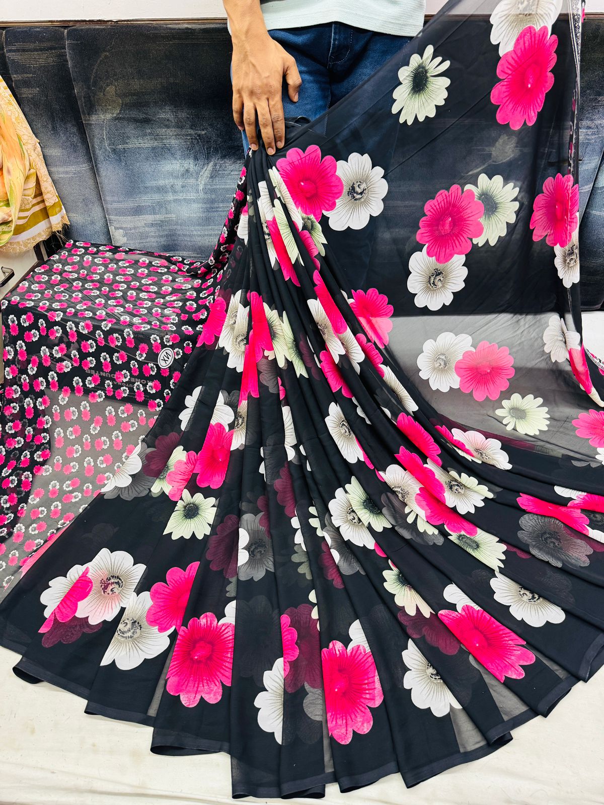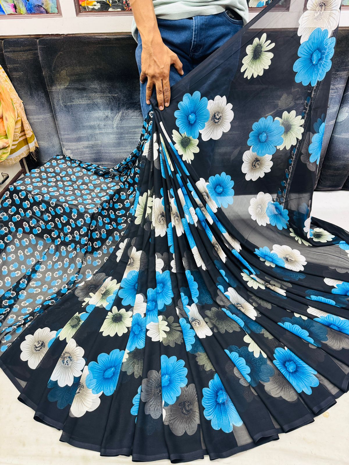 Women's Georgette Printed Saree With Unstitched Blouse Piece