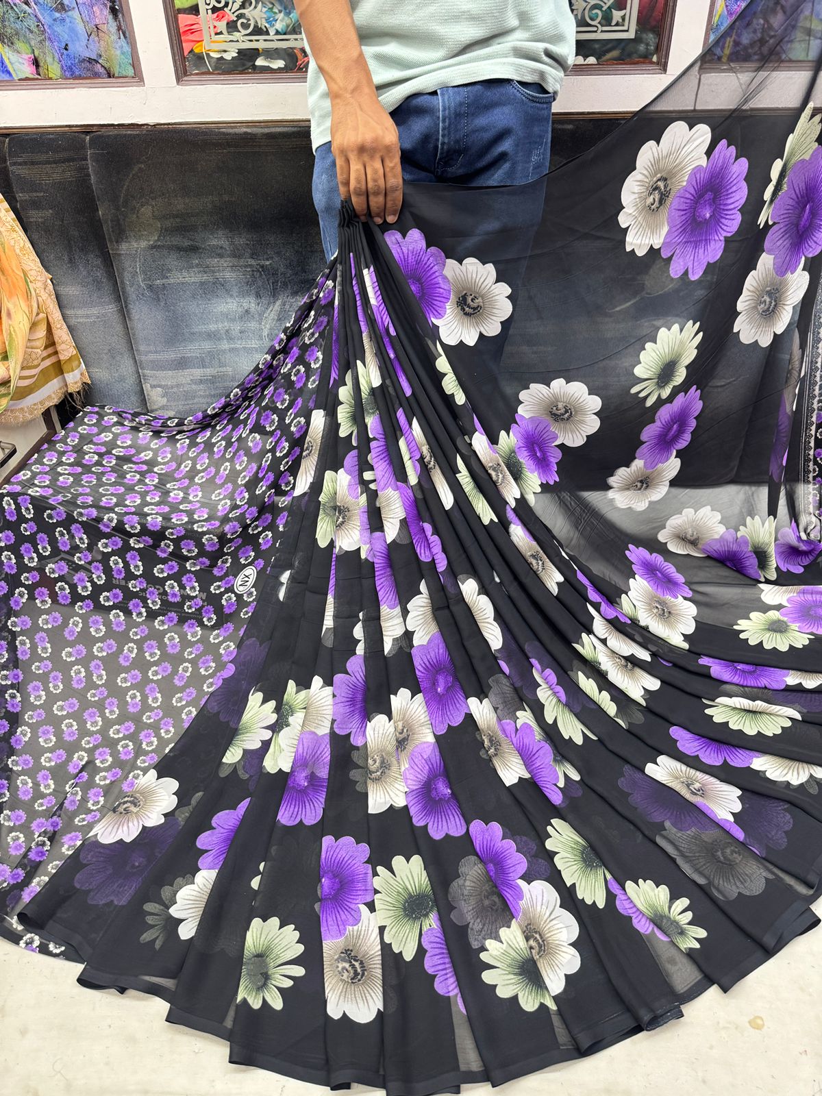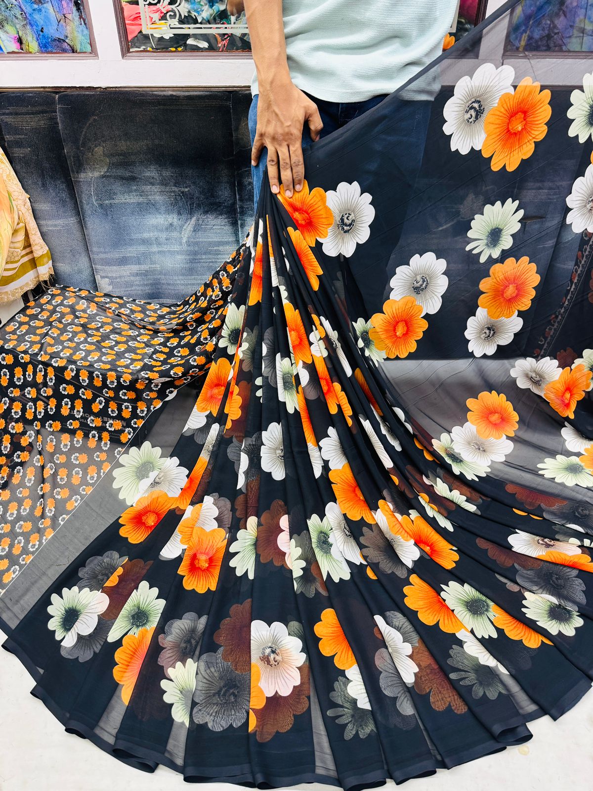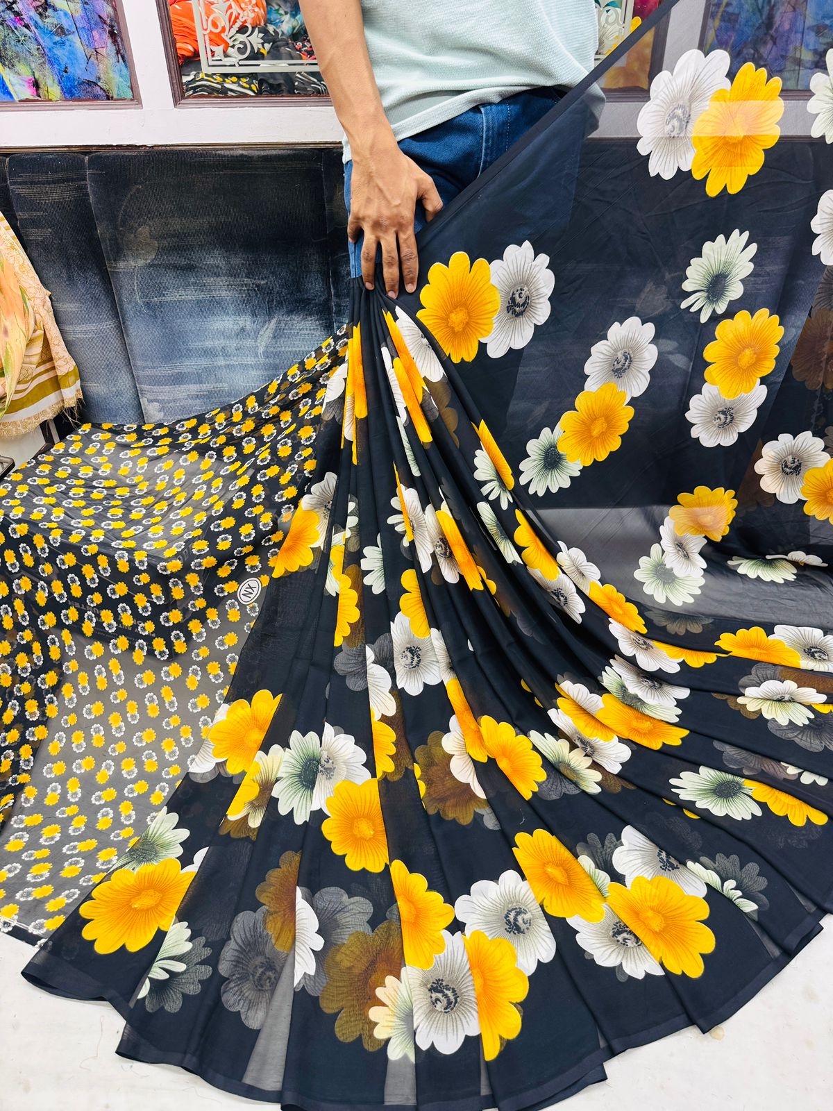Women's Georgette Printed Saree With Unstitched Blouse Piece