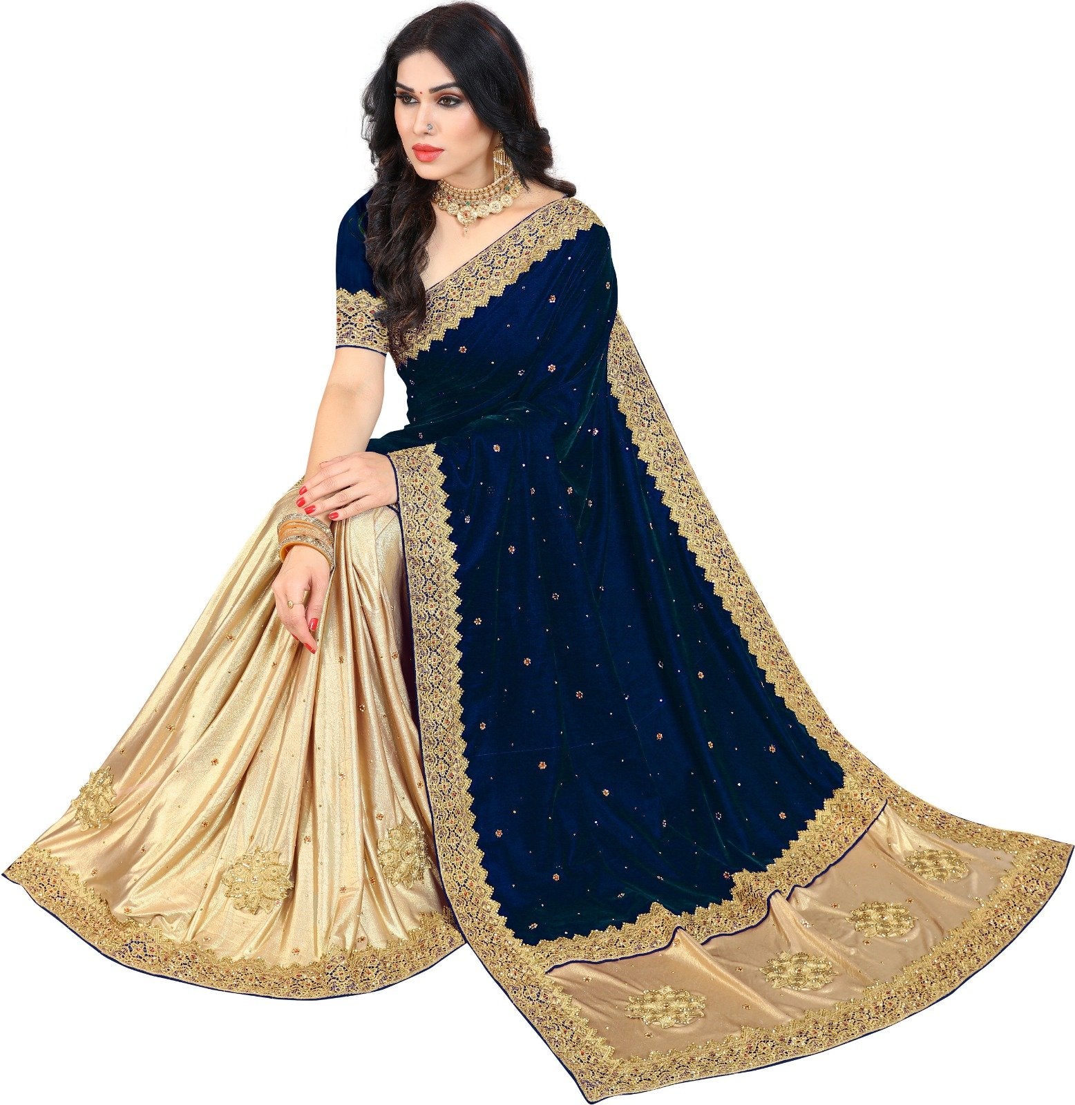 Saree Fabric : Velvet & Lycra Blend(Super Lining) || Blouse Fabric: Dupion Silk || Work type : Embroidered Lace Border(Lace & Pastel) || Type : Stylish Designer Saree. Saree comes with unstitched blouse piece,which is attached with end of the saree only. Buyer have to cut blouse part from the saree. Product image is modelling done by professional with best contrast and background so we may feel slight colour or style variation. Jewellery shown in the image is for only photography purpose jewelry is not sold with saree.
