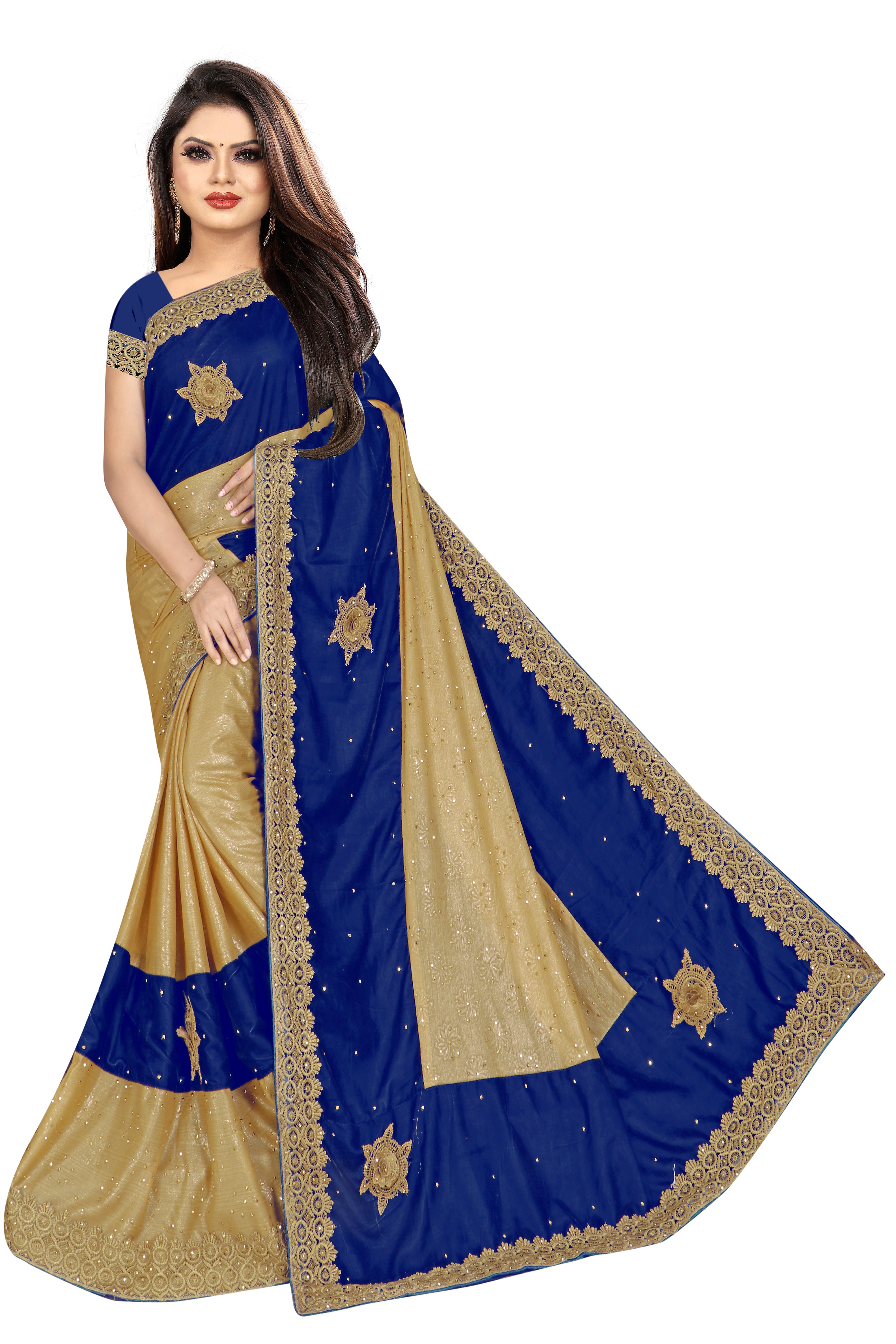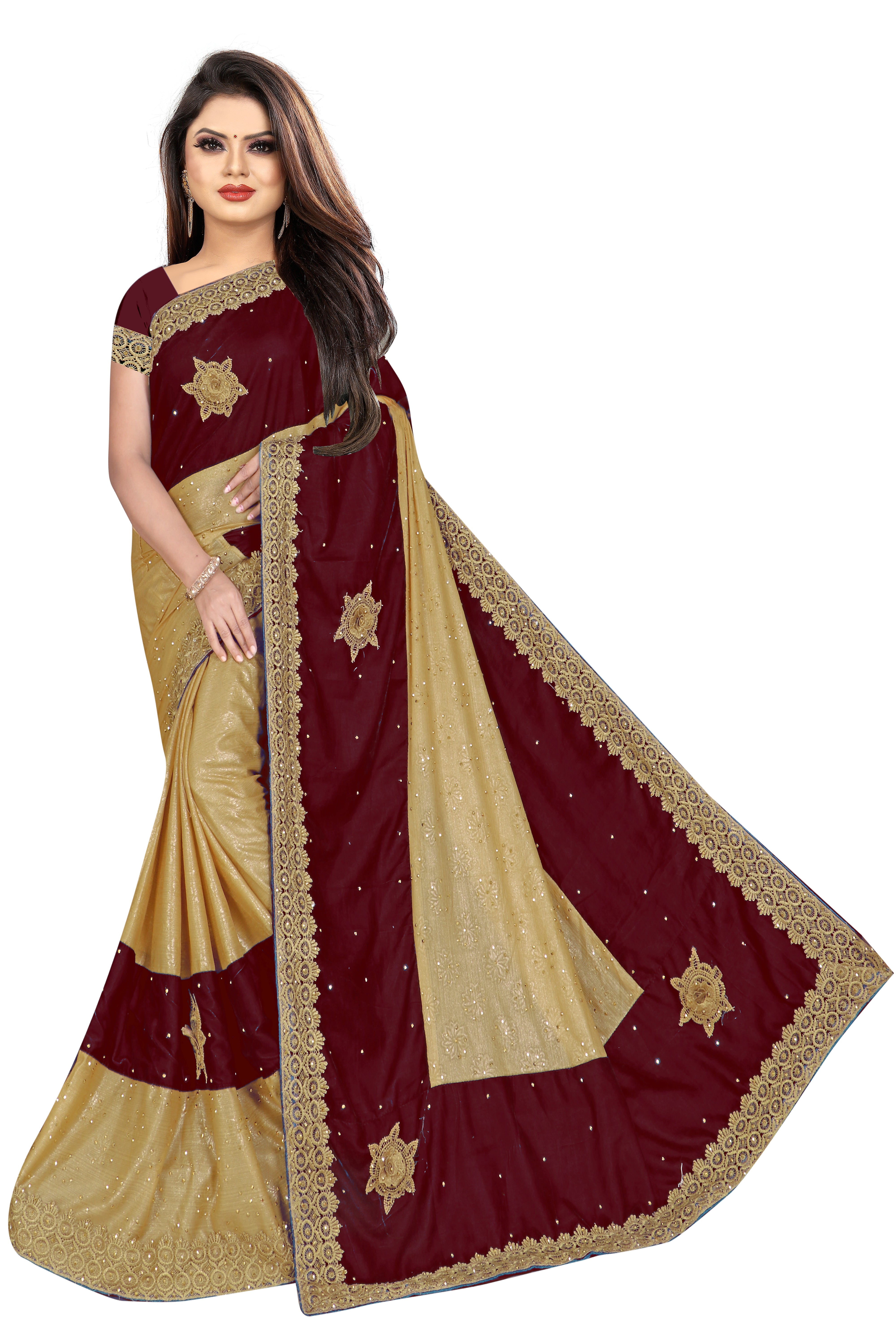 Saree Fabric : Velvet & Lycra Blend(Super Lining) || Blouse Fabric: Dupion Silk || Work type : Embroidered Lace Border(Lace & Pastel) || Type : Stylish Designer Saree. Saree comes with unstitched blouse piece,which is attached with end of the saree only. Buyer have to cut blouse part from the saree. Product image is modelling done by professional with best contrast and background so we may feel slight colour or style variation. Jewellery shown in the image is for only photography purpose jewelry is not sold with saree.