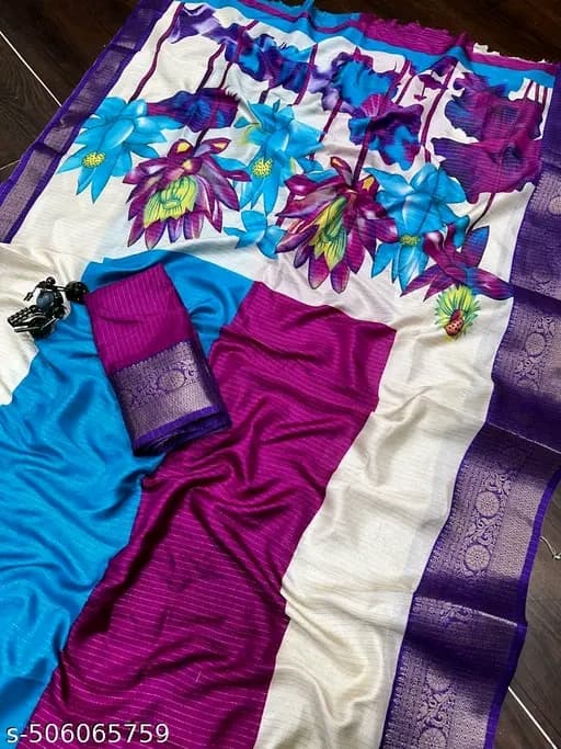 Dola Jequard Border kalamkari Print saree with Digital Printed beautiful Blouse for daily and wedding saree Dola Jequard Colour Border Batik White Colour saree with printed beautiful Blouse