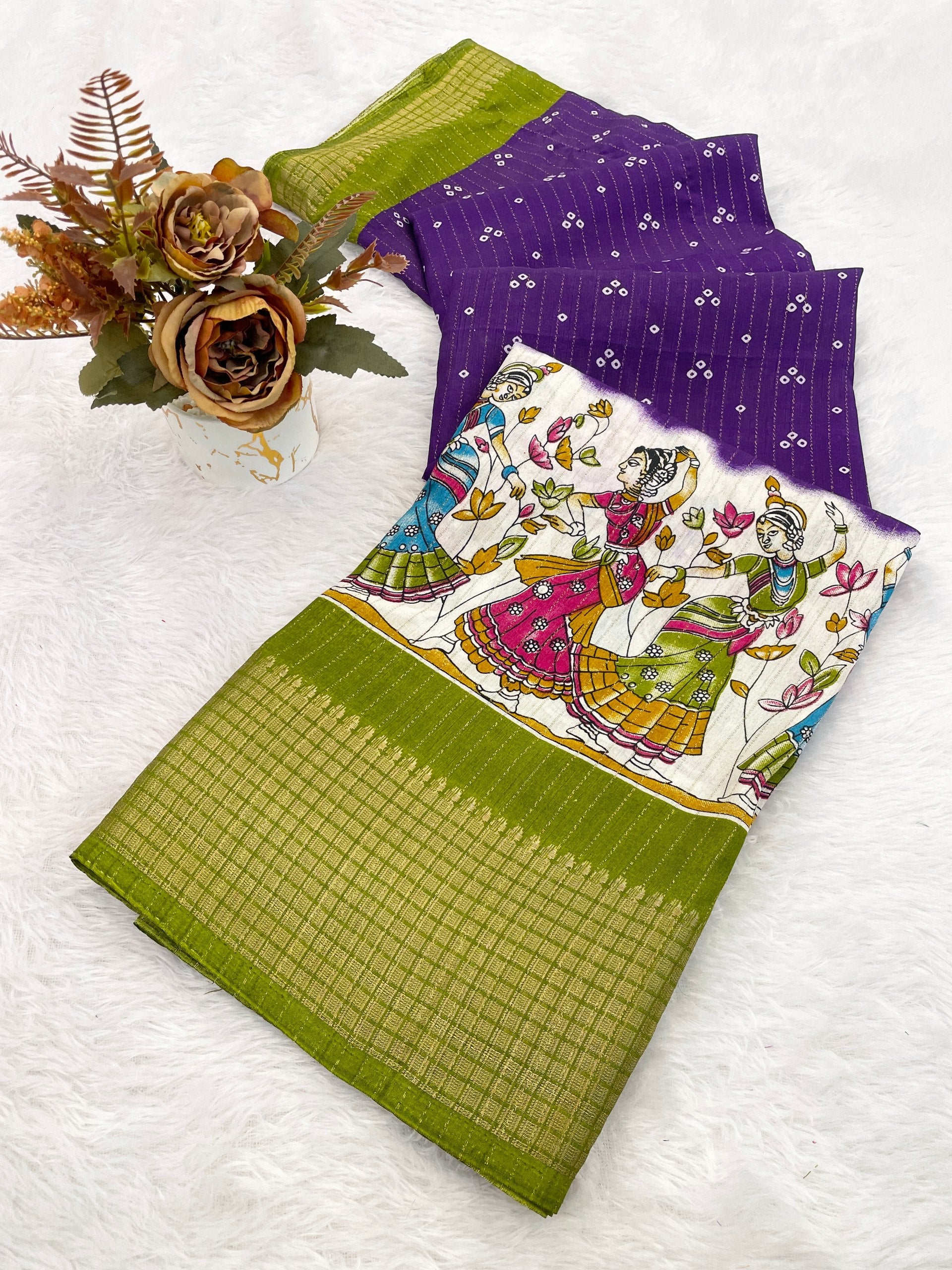 Name : Dola Jequard Border Reco Sparkle kalamkari