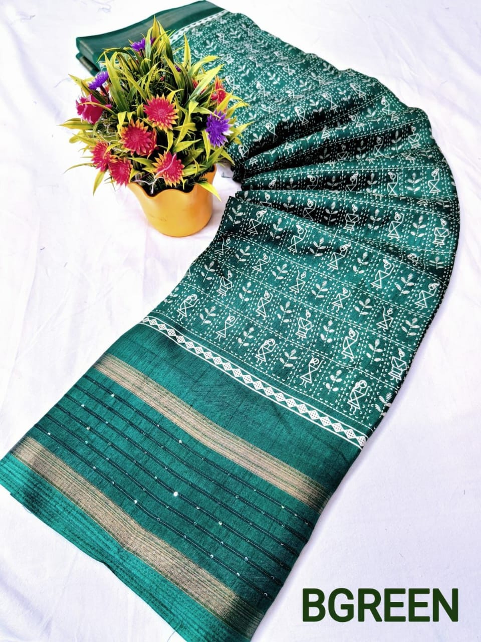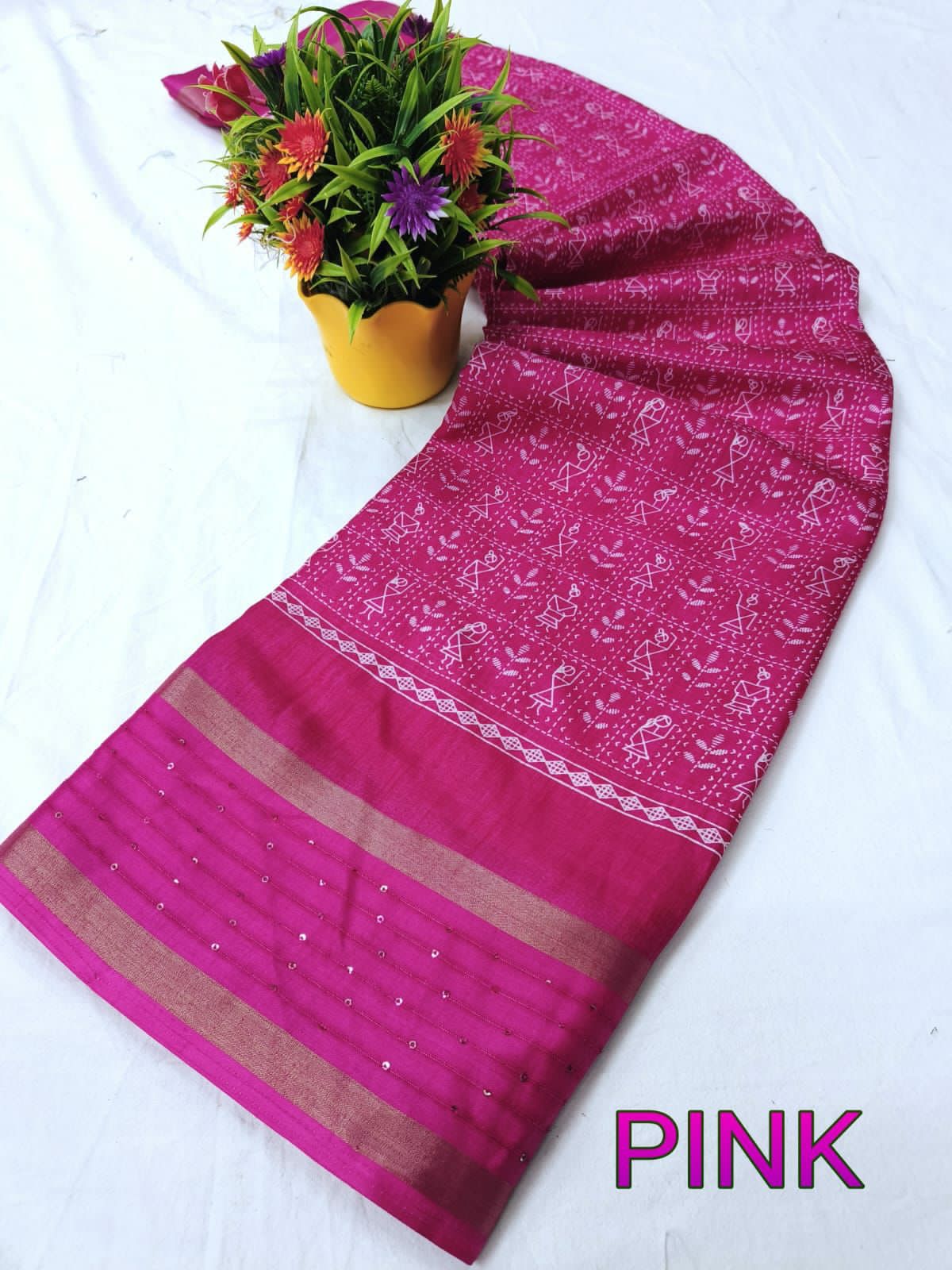 Dola Jequard Sequnce Border Bandhni Print saree with Digital printed beautiful Blouse for daily and wedding saree Dola Jequard Colour Border Batik White Colour saree with printed beautiful Blouse