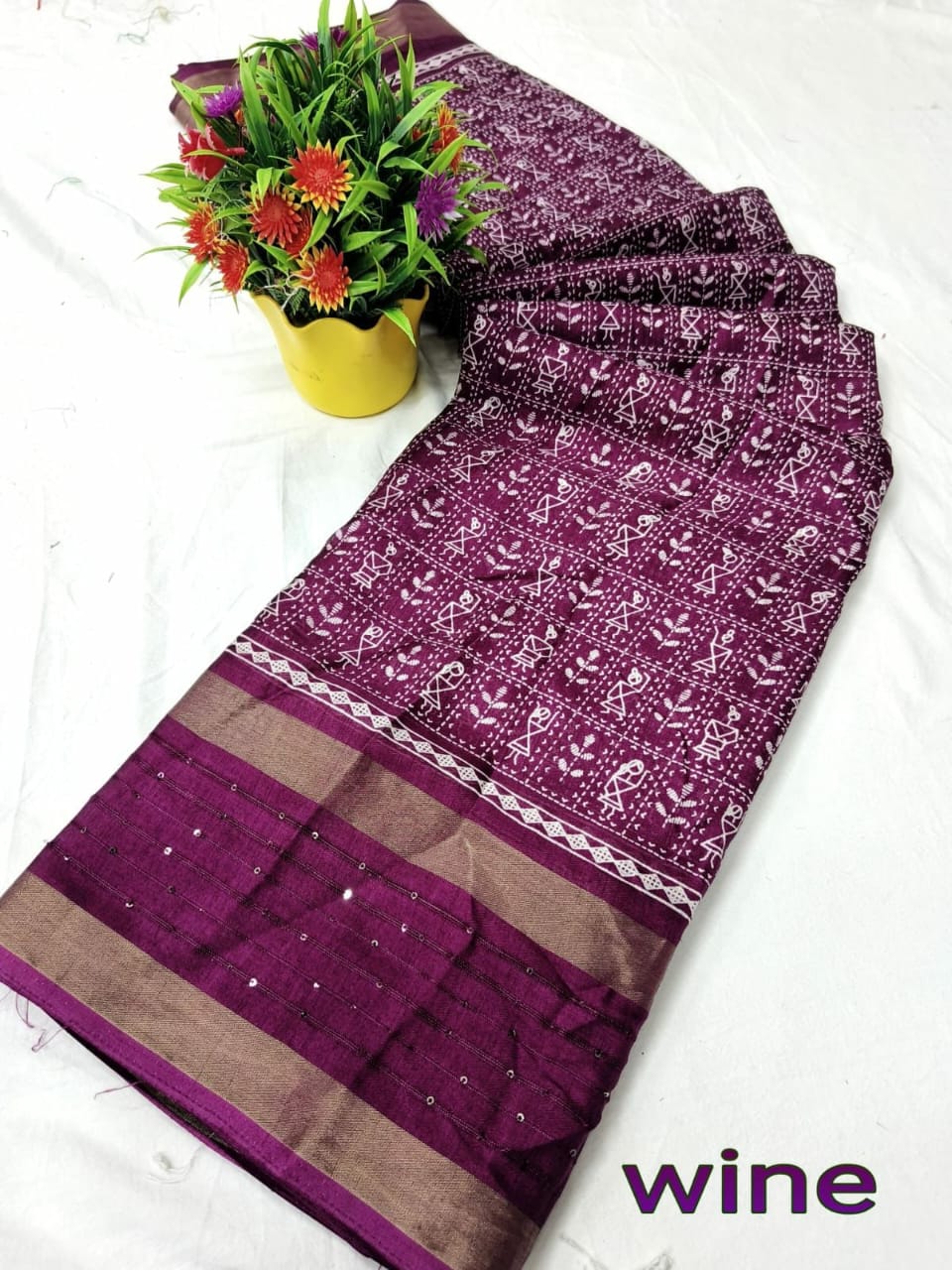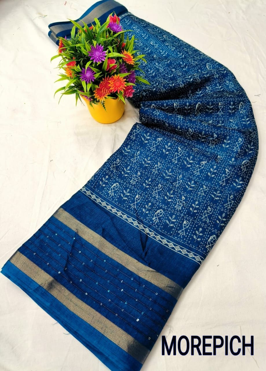 Name : Dola Jequard Border Digital Printed saree with printed beautiful Art Work With Blouse
