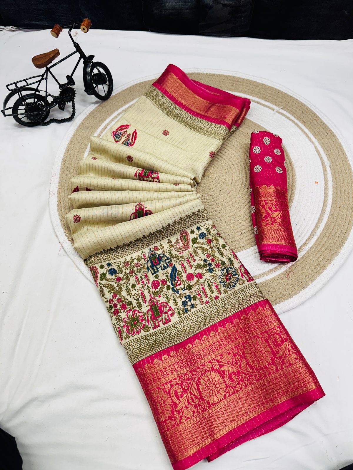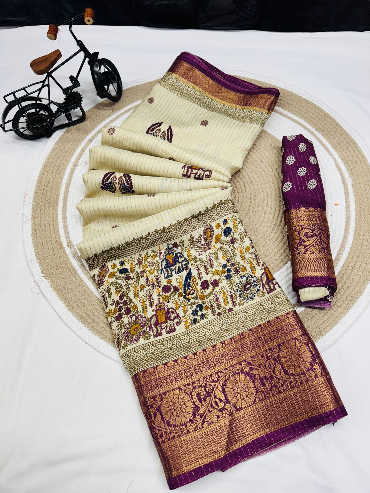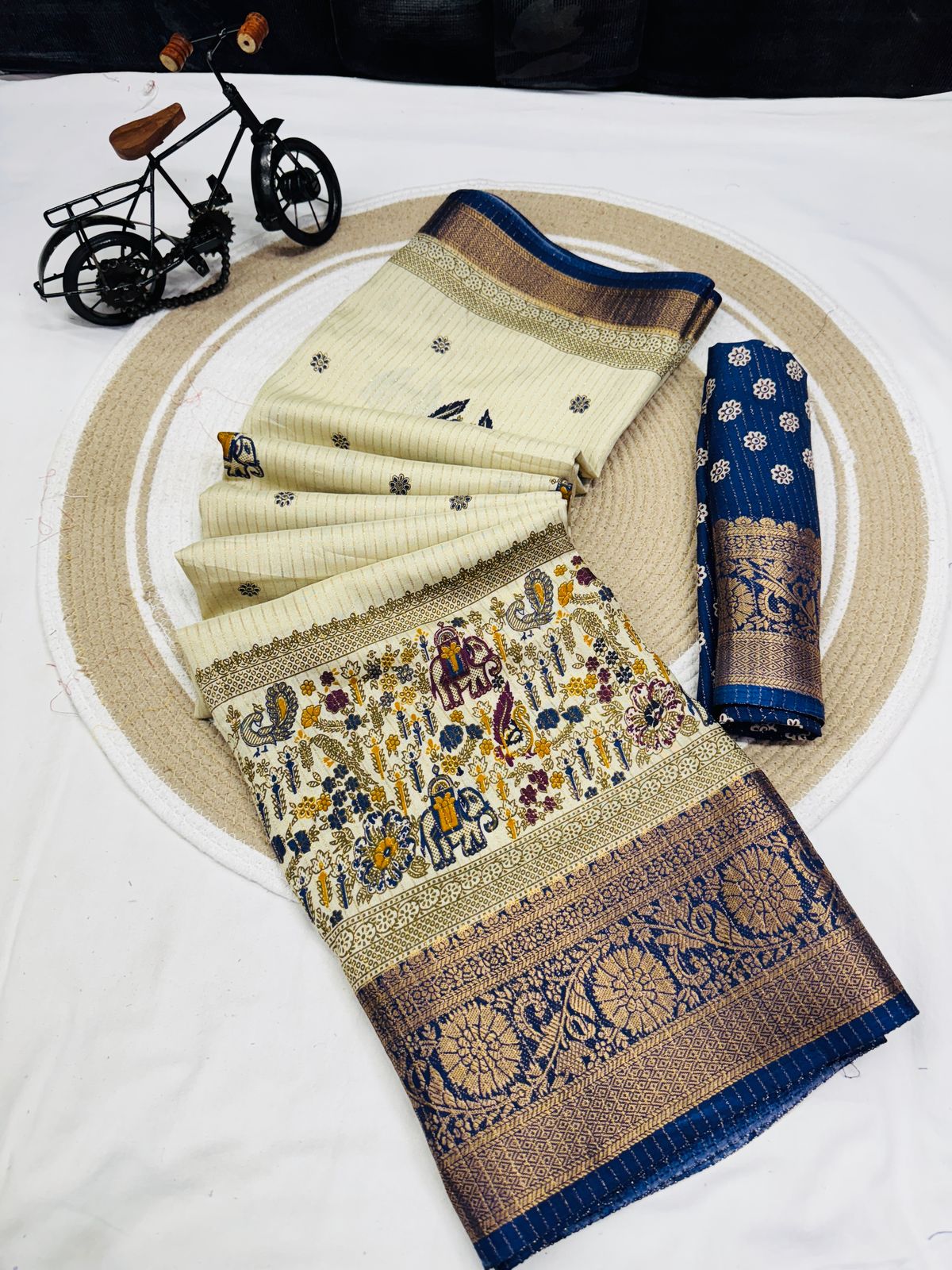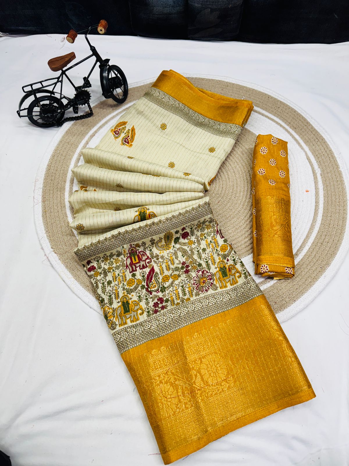 Saree Fabric : Chanderi Silk || Blouse Fabric : Chanderi Silk || Saree Work : Warli Print|| Blouse Work : Flower Print