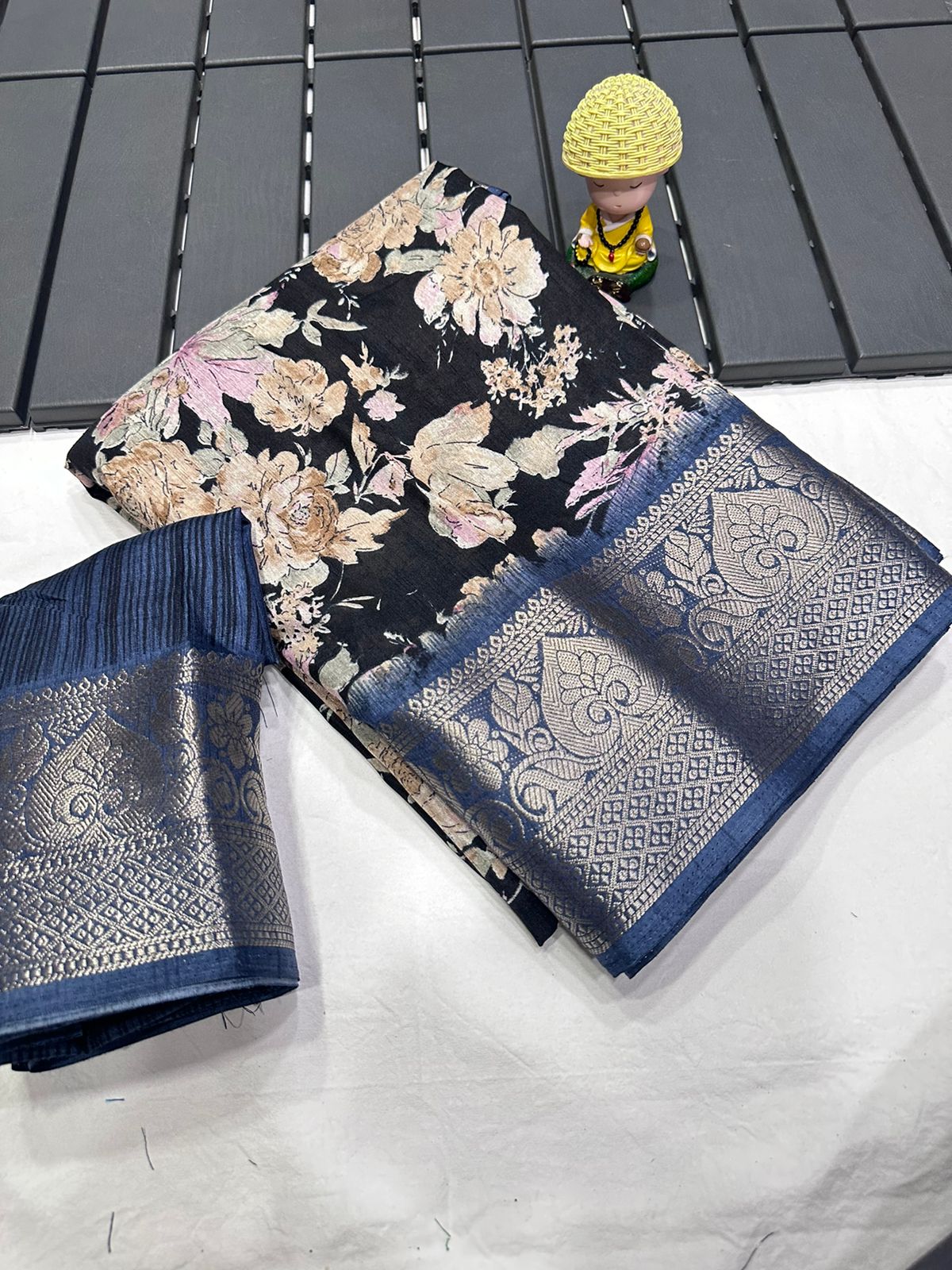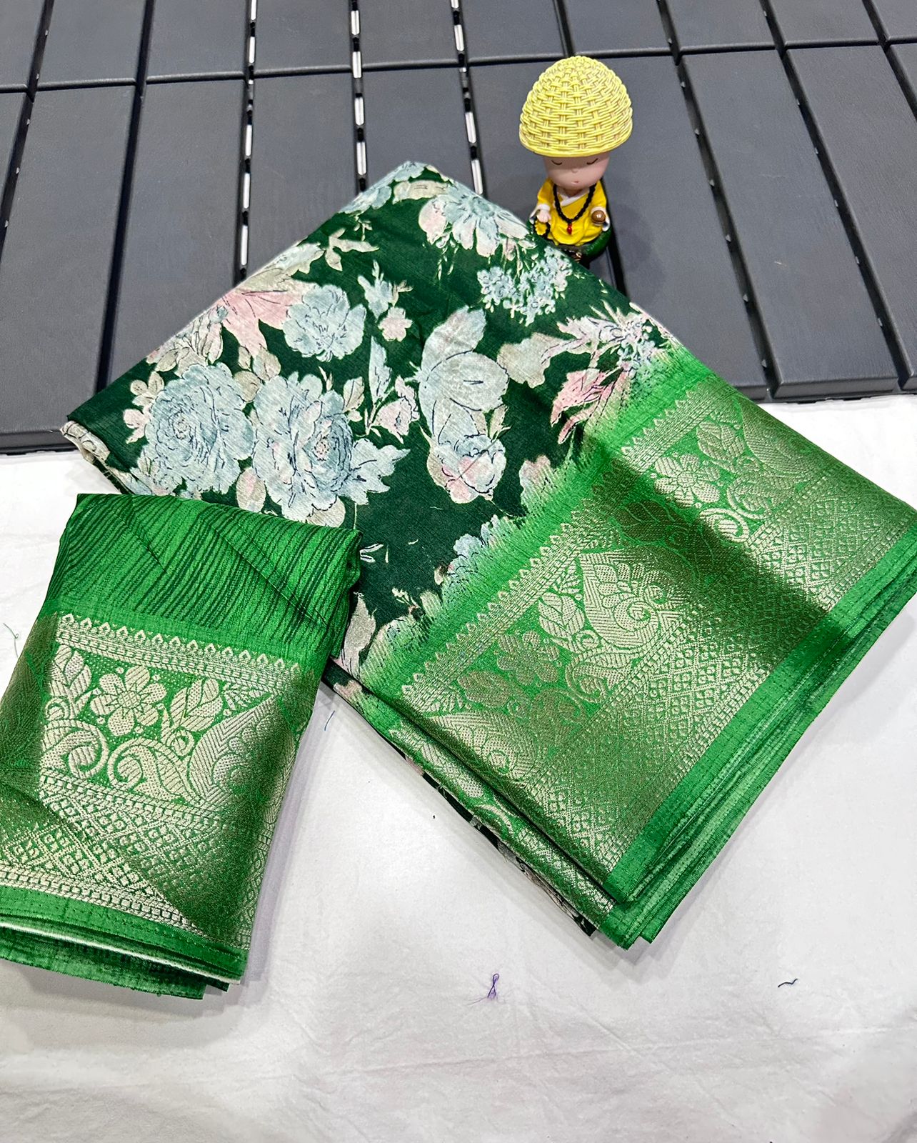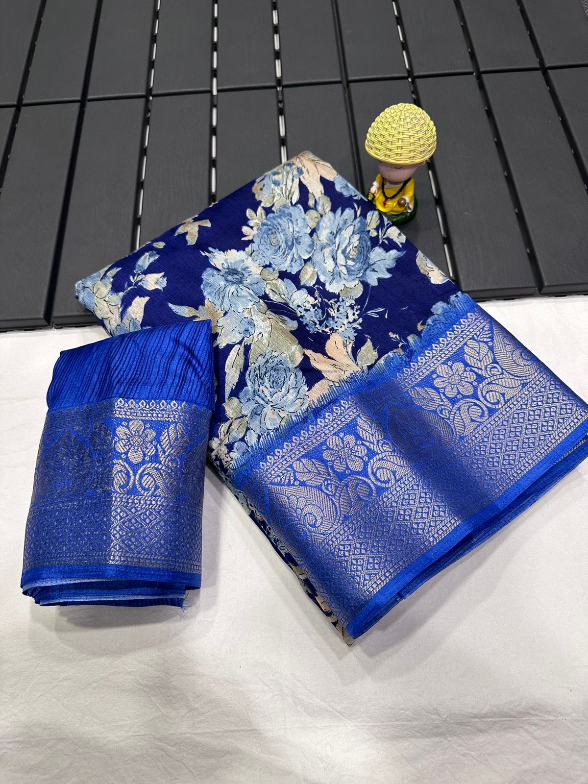 Dola Jequard Border Digital Kalamkari Flower Print saree with Digital Printed beautiful Blouse for daily and wedding saree Dola Kalamkari Jequard Colour Border Batik White Colour saree with printed beautiful Blouse