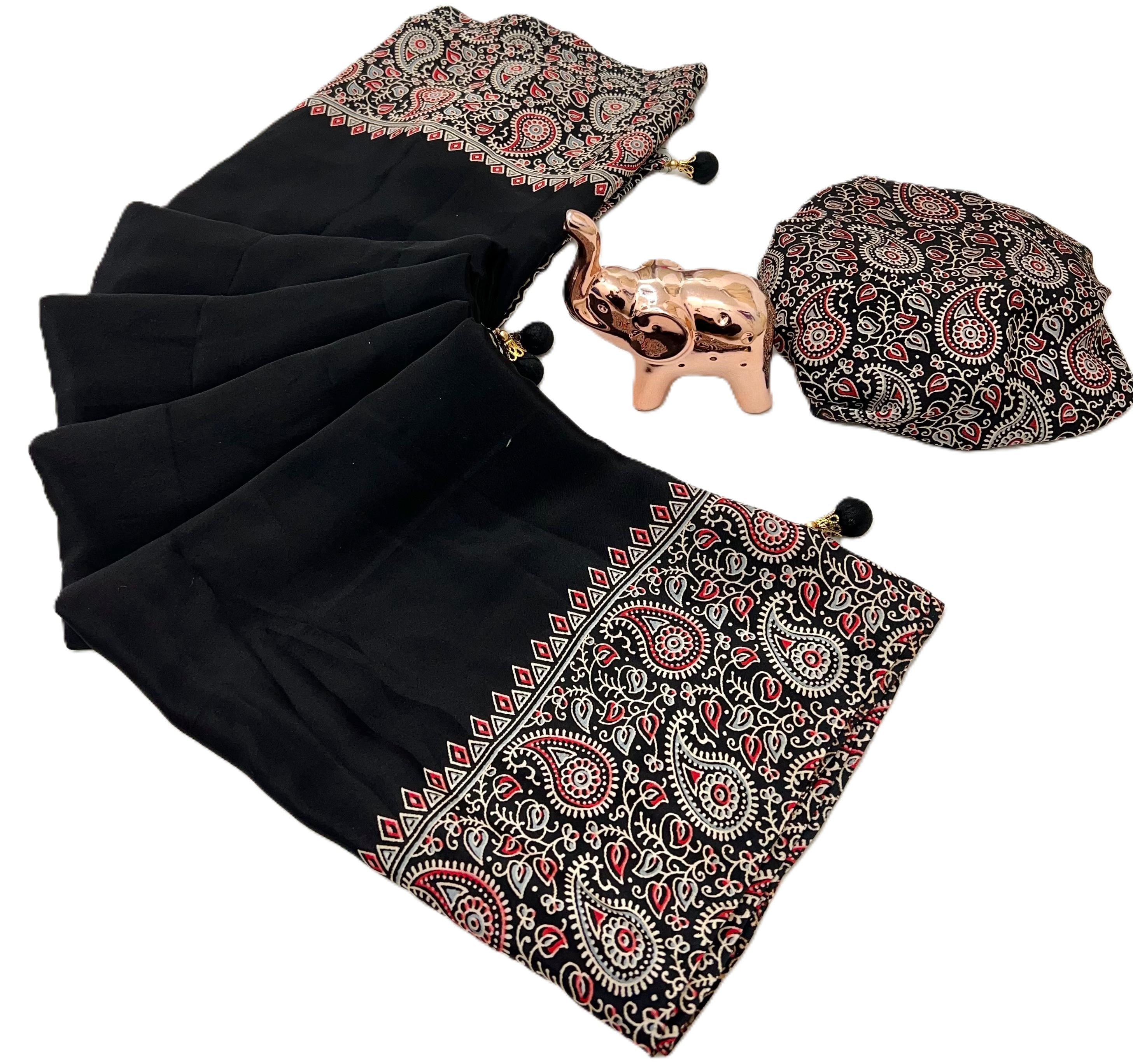 Crape Bandhani Print Saree with Gajji Digital Printed beautiful Blouse for daily and wedding Saree Crape Silk Colour Border with printed beautiful Blouse