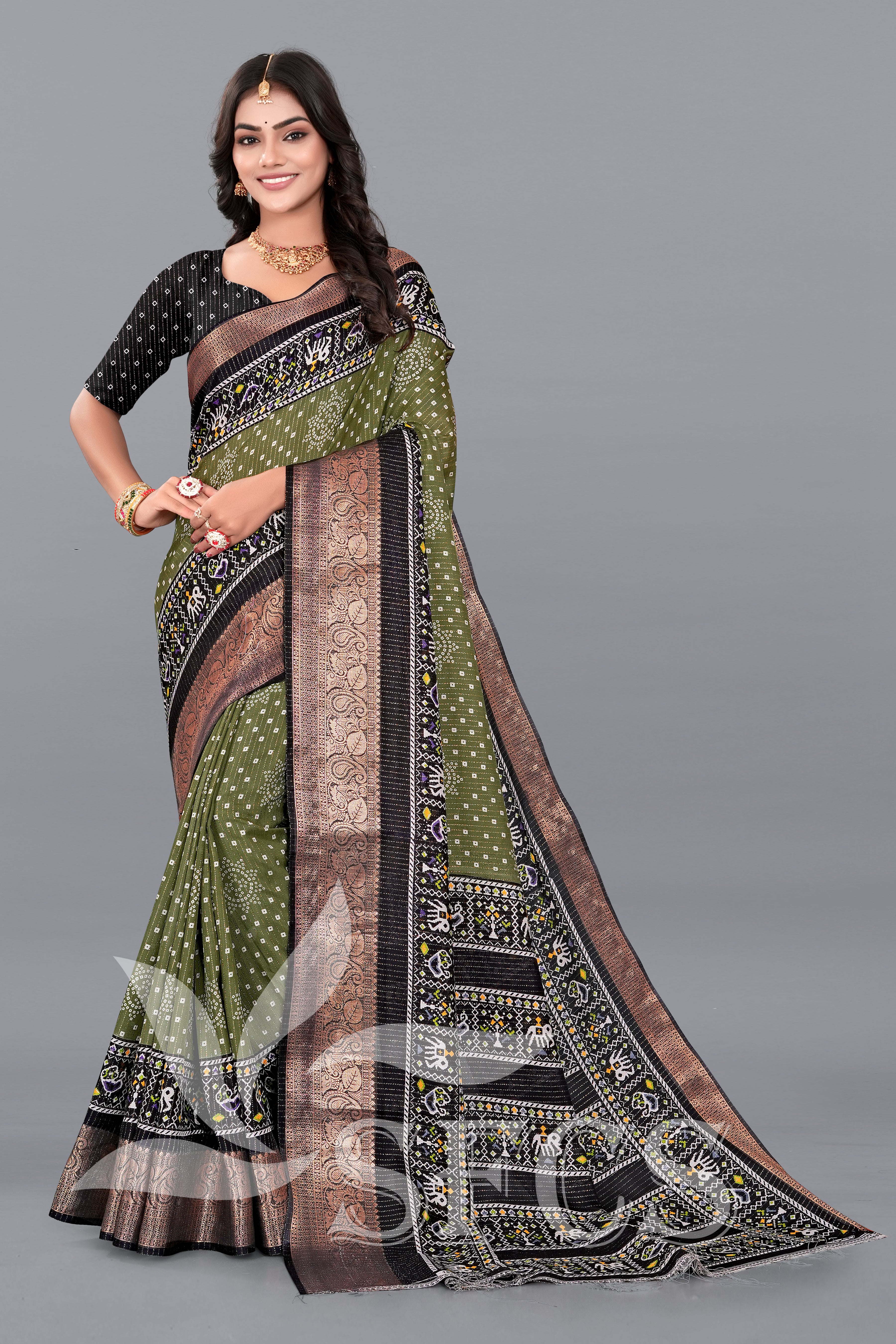 Name : DOLA SILK SPARKLE ZARI BANDHANI PATOLA PRINT WITH JACQUARD BODAR