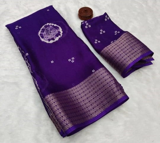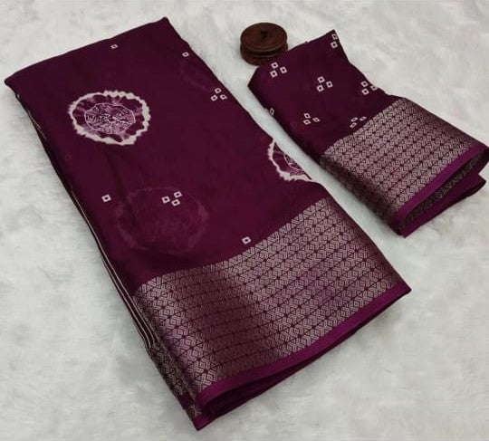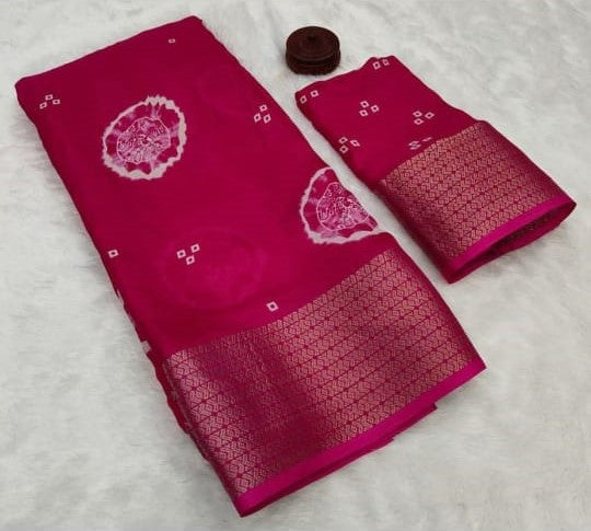 Saree Fabric : Marshmallow Silk || Blouse Fabric : Marshmallow Silk || Saree Work : Bandhni Print|| Blouse Work : Flower Print